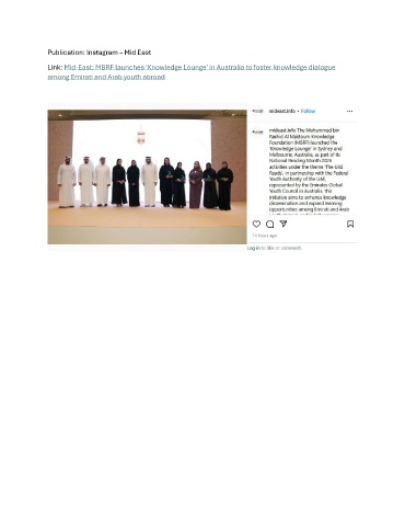 Publication: Instagram – Mid East Link: Mid-East: MBRF launches ‘Knowledge Lounge’ in Australia to foster knowledge dialogue among Emirati and Arab youth abroad