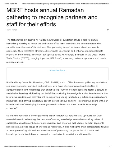3/19/25, 12:56 PM MBRF hosts annual Ramadan gathering to recognize partners and staff for their efforts - Middle East Business News and Informat…