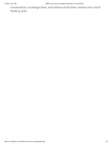 3/19/25, 12:57 PM MBRF hosts annual Ramadan Gathering to honor partners conversations, exchange ideas, and enhance both their creative and critical thinking skills. https://emiratitimes.com/mbrf-hosts-annual-ramadan-gathering/ 4/4