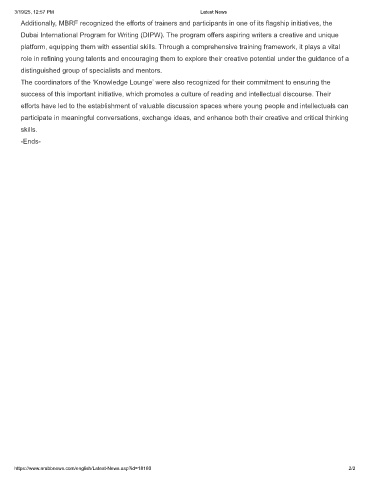 Dubai International Program for Writing (DIPW). The program offers aspiring writers a creative and unique