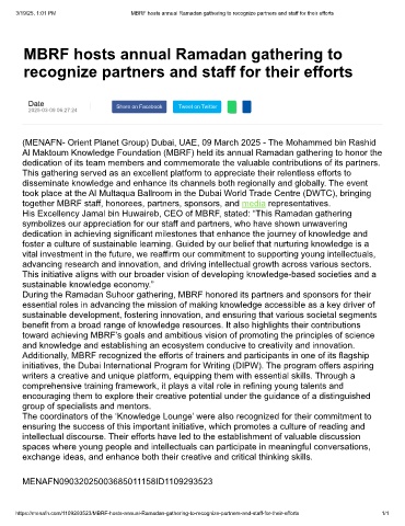 3/19/25, 1:01 PM MBRF hosts annual Ramadan gathering to recognize partners and staff for their efforts