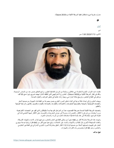 «Talent 2033» نم ةيناثلا ةلحرملا ذيفنت لمكتست »يبد ةيرشب دراوم «