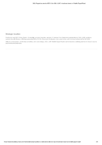 https://www.traveldailynews.com/real-estate/sol-properties-unveils-aed-2-2bn-sol-luxe-mixed-use-tower-on-sheikh-zayed-road/ 3/3