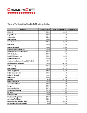 WEBSITE VALUE (IN AED) TOTAL MEDIA REACH NUMBER OF HITS