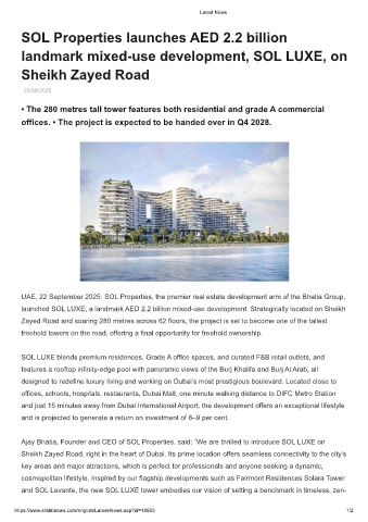 launched SOL LUXE, a landmark AED 2.2 billion mixed-use development. Strategically located on Sheikh