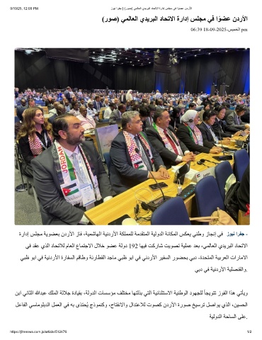 ةرادإ ﺲﻠﺠﻣ ﺔﯾﻮﻀﻌﺑ ندرﻷا زﺎﻓ ،ﺔﯿﻤﺷﺎﮭﻟا ﺔﯿﻧدرﻷا ﺔﻜﻠﻤﻤﻠﻟ ﺔﻣﺪﻘﺘﻤﻟا ﺔﯿﻟوﺪﻟا ﺔﻧﺎﻜﻤﻟا ﺲﻜﻌﯾ ﻲﻨطو زﺎﺠﻧإ ﻲﻓ زﻮﯿﻧ اﺮﻔﺟ -