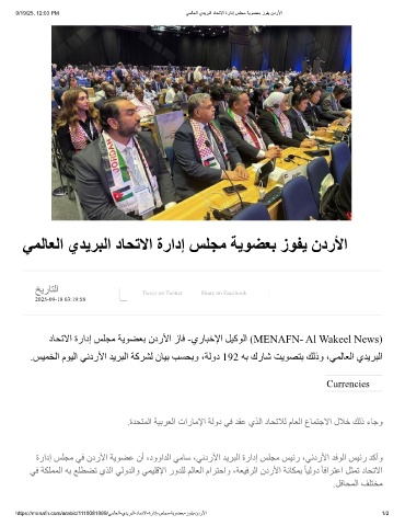 .ﺲﯿﻤﺨﻟا مﻮﯿﻟا ﻲﻧدرﻷا ﺪﯾﺮﺒﻟا ﺔﻛﺮﺸﻟ نﺎﯿﺑ ﺐﺴﺤﺑو ،ﺔﻟود 192 ﮫﺑ كرﺎﺷ ﺖﯾﻮﺼﺘﺑ ﻚﻟذو ،ﻲﻤﻟﺎﻌﻟا يﺪﯾﺮﺒﻟا