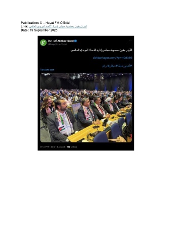 Publication: X – Hayat FM Official Link: يملاعلا يديربلا داحتلاا ةرادإ سلجم ةيوضعب زوفي ندرلأا Date: 19 September 2025