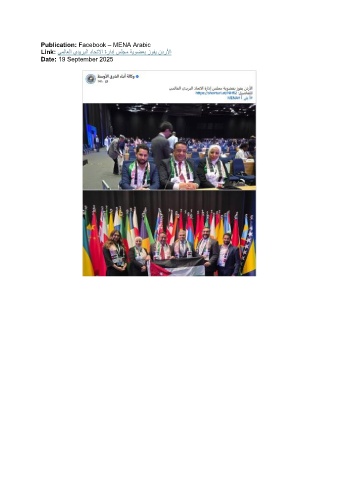 Publication: Facebook – MENA Arabic Link: يملاعلا يديربلا داحتلاا ةرادإ سلجم ةيوضعب زوفي ندرلأا Date: 19 September 2025