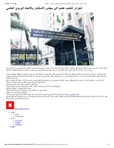 9/19/25, 11:46 AM دھﺎﺟﻣﻟا : رﺋازﺟﻟا - ﻲﻣﻟﺎﻌﻟا يدﯾرﺑﻟا دﺎﺣﺗﻻﺎﺑ رﺎﻣﺛﺗﺳﻻا سﻠﺟﻣ ﻲﻓ ًاوﺿﻋ بﺧﺗﻧُﺗ رﺋازﺟﻟا