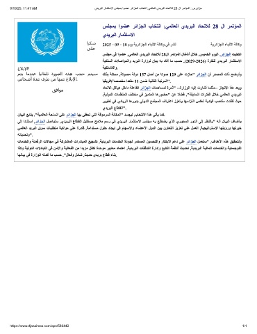 اﺮﻜﺷ 2025 - 09 - 18 مﻮﯾ ﺔﯾﺮﺋاﺰﺠﻟا ءﺎﺒﻧﻷا ﺔﻟﺎﻛو ﻲﻓ ﺮﺸﻧ ﺔﯾﺮﺋاﺰﺠﻟا ءﺎﺒﻧﻷا ﺔﻟﺎﻛو