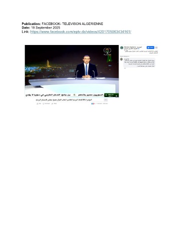 Publication: FACEBOOK- TELEVISON ALGERIENNE Date: 19 September 2025 Link: https://www.facebook.com/eptv.dz/videos/4201705063434161/