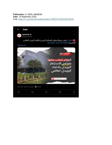 Publication: X- DZAL MASDAR Date: 19 September 2025 Link: https://x.com/DzAlmasdar/status/1968707236538016226