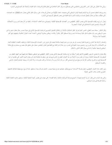 تﺎﺣﺎﺟﻧﻟا دﻌﺑ ،2040 مﺎﻋ لوﻠﺣﺑ ﻲﻛذﻟا لﻘﻧﻟا لﺋﺎﺳو ﻰﻠﻋ تﻼﺣرﻟا ﻲﻟﺎﻣﺟإ نﻣ %25 دﺎﻣﺗﻋا فدﮭﺗﺳﺗ ﻲﺗﻟا ﻲﺑظوﺑأ ةرﺎﻣﻹ ﺔﯾﺟﯾﺗارﺗﺳﻹا ﺔﯾؤرﻟا نﻣﺿ ةوطﺧﻟا هذھ جردﻧﺗو