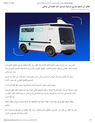 9/16/25, 11:19 AM ﻲﺑظوﺑأ ﻲﻓ ةدﺎﯾﻘﻟا ﺔﯾﺗاذ لﯾﺻوﺗ تﺎﺑﻛرﻣﻟ ﻲﺑﯾرﺟﺗ لﯾﻐﺷﺗ لوأ قﻼطإ - aleumumnews