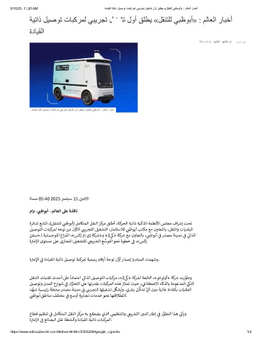 9/16/25, 11:20 AM ةدﺎﯾﻘﻟا ﺔﯾﺗاذ لﯾﺻوﺗ تﺎﺑﻛرﻣﻟ ﻲﺑﯾرﺟﺗ لﯾﻐﺷﺗ لوأ ﻖﻠطﯾ «لﻘﻧﺗﻠﻟ ﻲﺑظوﺑأ» : مﻟﺎﻌﻟا رﺎﺑﺧأ