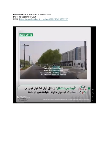 Publication: FACEBOOK- FORSAN UAE Date: 16 September 2025 LINK: https://www.facebook.com/reel/819203423782255