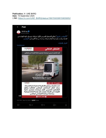 Publication: X- UAE BARQ Date: 16 September 2025 LINK: https://x.com/UAE_BARQ/status/1967558398159056952