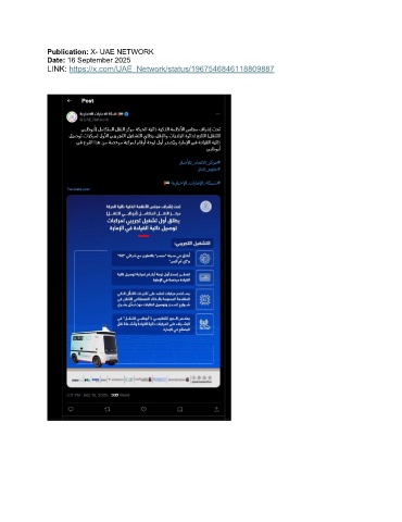 Publication: X- UAE NETWORK Date: 16 September 2025 LINK: https://x.com/UAE_Network/status/1967546846118809887