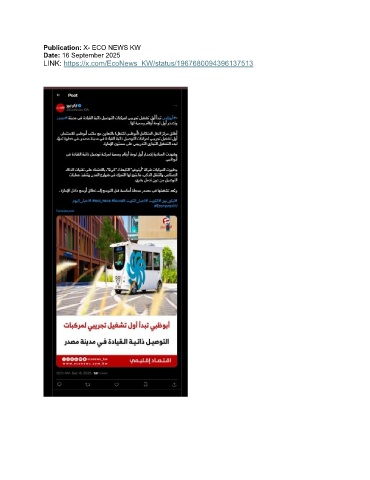 Publication: X- ECO NEWS KW Date: 16 September 2025 LINK: https://x.com/EcoNews_KW/status/1967680094396137513