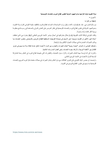 تيوكلا ةلود مازتلا يشولبلا ةميلح فيلكتلاب ديربلا عاطقل دعاسملا تلاصاوملا ةرازو ليكو تدكأ -- )انوك( - 8 - 9 يبد نذملا ملاس نم