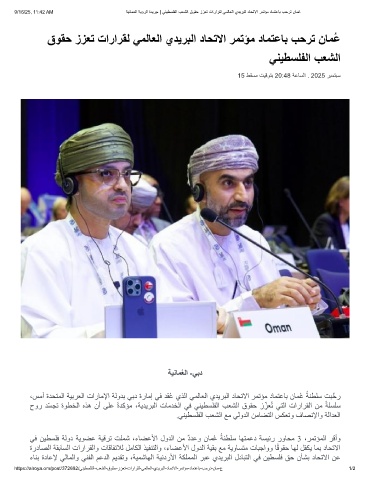 9/16/25, 11:42 AM ﺔﯾﻧﺎﻣﻌﻟا ﺔﯾؤرﻟا ةدﯾرﺟ | ﻲﻧﯾطﺳﻠﻔﻟا بﻌﺷﻟا قوﻘﺣ ززﻌﺗ تارارﻘﻟ ﻲﻣﻟﺎﻌﻟا يدﯾرﺑﻟا دﺎﺣﺗﻻا رﻣﺗؤﻣ دﺎﻣﺗﻋﺎﺑ بﺣرﺗ نﺎﻣُﻋ