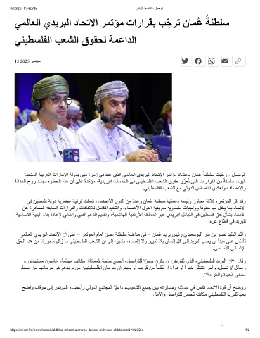 ﻲﻤﻟﺎﻌﻟا يﺪﯾﺮﺒﻟا دﺎﺤﺗﻻا نأ ﻰﻠﻋ – ﺮﻤﺗﺆﻤﻟا مﺎﻣأ نﺎﻤُﻋ ﺔﻨﻄﻠﺳ ﺔﻠﺧاﺪﻣ ﻲﻓ – نﺎﻤُﻋ ﺪﯾﺮﺑ ﺲﯿﺋر يﺪﯿﻌﺳﻮﺒﻟا رﺪﺑ ﻦﺑ ﺮﺼﻧ ﺪﯿّﺴﻟا ﺪّﻛأو