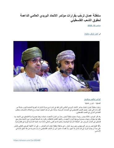 امب داحتلاا يف نيطسلف ةلود ةيوضع ةيقرت تلمش ،ءاضعلأا لودلا نم ٌددعو نامُع ةنطلس اهتمعد ةسيئر رواحم ةثلاث ،رمتؤملا رقأ دقو