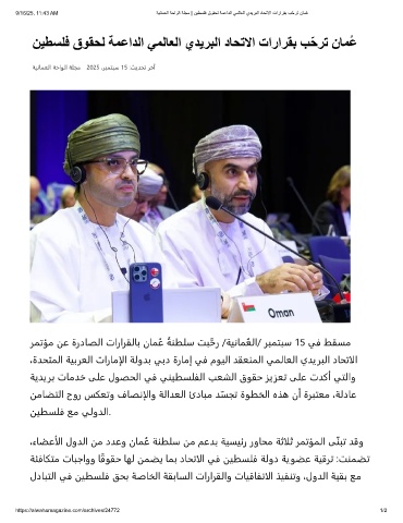 9/16/25, 11:43 AM ﺔﯾﻧﺎﻣﻌﻟا ﺔﺣاوﻟا ﺔﻠﺟﻣ | نﯾطﺳﻠﻓ قوﻘﺣﻟ ﺔﻣﻋادﻟا ﻲﻣﻟﺎﻌﻟا يدﯾرﺑﻟا دﺎﺣﺗﻻا تارارﻘﺑ بّﺣرﺗ نﺎﻣُﻋ