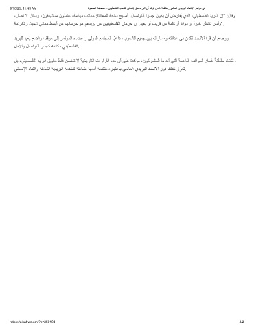 9/16/25, 11:43 AM ةوﺣﺻﻟا ﺔﻔﯾﺣﺻ – ﻲﻧﯾطﺳﻠﻔﻟا بﻌﺷﻠﻟ ﻲﻧﺎﺳﻧإ ﻖﺣ دﯾرﺑﻟا نأ دﻛؤﺗ نﺎﻣُﻋ ﺔﻧطﻠﺳ..ﻲﻣﻟﺎﻌﻟا يدﯾرﺑﻟا دﺎﺣﺗﻻا رﻣﺗؤﻣ ﻲﻓ