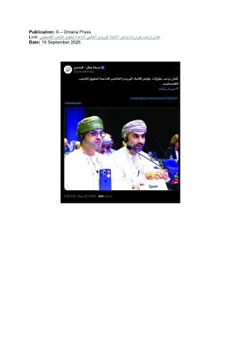 Publication: X – Omane Press Link: ينيطسلفلا بعشلا قوقحل ةمعادلا يملاعلا يديربلا داحتلاا رمتؤم تارارقب بحرت نامُع Date: 16 September 2025