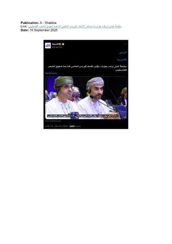 Publication: X - Shabiba ُ Link: ينيطسلفلا بعشلا قوقحل ةمعادلا يملاعلا يديربلا داحتلاا رمتؤم تارارقب بّ حرت نامُع ةنطلس Date: 16 September 2025
