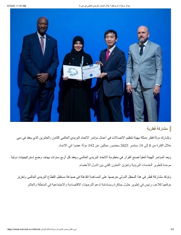 9/16/25, 11:55 AM 3 ﻲﺑد ﻲﻓ ﻲﻣﻟﺎﻌﻟا يدﯾرﺑﻟا رﻣﺗؤﻣﻟا لﻼﺧ "رطﻗ دﯾرﺑ" ـﻟ ﺔﯾﻟود زﺋاوﺟ