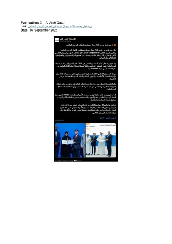Publication: X – Al Arab Qatar Link: يملاعلا يديربلا رمتؤملا يف ةيلود زئاوج ثلاث دصحي رطق ديرب Date: 16 September 2025