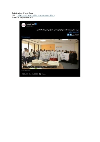 Publication: X – Al Raya Link: يملاعلا يديربلا رمتؤملا يف ةيلود زئاوج ثلاث دصحي رطق ديرب Date: 16 September 2025