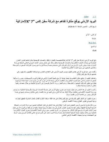 نواعتلا زيزعتل مهافت ةركذم ةيتسجوللا تامدخلاو لقنلاو ةراجتلاب ةصصختملاةيتاراملإا X" 7 " سكإ نفس ةكرشو يندرلأا ديربلا عقو