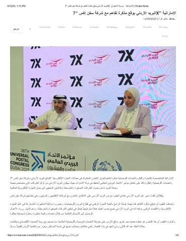 9/12/25, 1:10 PM 7“ سﻛإ نﻔﺳ ﺔﻛرﺷ ﻊﻣ مھﺎﻔﺗ ةرﻛذﻣ ﻊﻗوﯾ ﻲﻧدرﻷا دﯾرﺑﻟاX” يرﺎﺑﺧﻻا ﺔﺑورﻋ - ﺔﯾﺗارﺎﻣﻹا | Oroba News