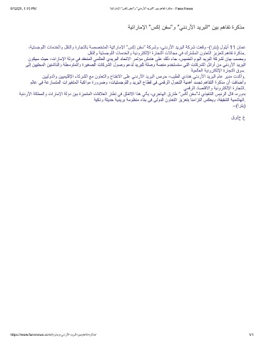 9/12/25, 1:10 PM ﺔﯾﺗارﺎﻣﻹا "سﻛإ نﻔﺳ"و "ﻲﻧدرﻷا دﯾرﺑﻟا" نﯾﺑ مھﺎﻔﺗ ةرﻛذﻣ - Fana News