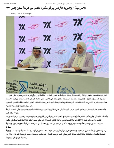 7" ﺲﻛإ ﻦﻔﺳ ﺔﻛﺮﺷ ﻊﻣ ﻢھﺎﻔﺗ ةﺮﻛﺬﻣ ﻊﻗﻮﯾ ﻲﻧدرﻷا ﺪﯾﺮﺒﻟاX" ﺔﯿﺗارﺎﻣﻹا