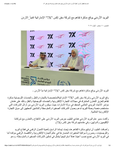 ندرﻻا_ﺄﺒﻧ# ﺔﯿﺗارﺎﻣﻹا "7X" ﺲﻛإ ﻦﻔﺳ ﺔﻛﺮﺷ ﻊﻣ ﻢھﺎﻔﺗ ةﺮﻛﺬﻣ ﻊﻗﻮﯾ ﻲﻧدرﻷا ﺪﯾﺮﺒﻟا