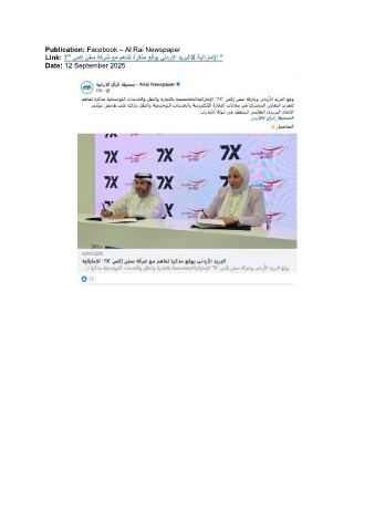 Publication: Facebook – Al Rai Newspaper Link: 7" سكإ نفس ةكرش عم مهافت ةركذم عقوي يندرلأا ديربلاX ةيتاراملإا " Date: 12 September 2025