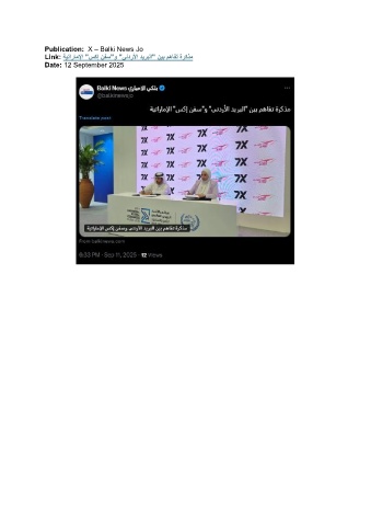 Publication: X – Balki News Jo Link: ةيتاراملإا "سكإ نفس"و "يندرلأا ديربلا" نيب مهافت ةركذم Date: 12 September 2025
