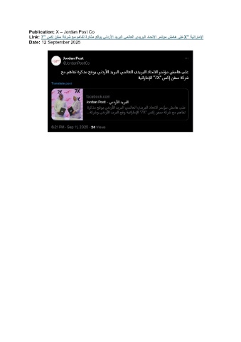 Publication: X – Jordan Post Co Link: 7" سكإ نفس ةكرش عم مهافت ةركذم عقوي يندرلأا ديربلا يملاعلا يديربلا داحتلاا رمتؤم شماه ىلعX" ةيتاراملإا Date: 12 September 2025