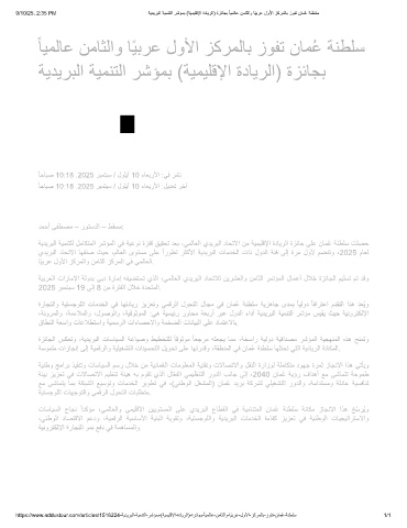 9/10/25, 2:35 PM ﺔﯾدﯾرﺑﻟا ﺔﯾﻣﻧﺗﻟا رﺷؤﻣﺑ (ﺔﯾﻣﯾﻠﻗﻹا ةدﺎﯾرﻟا) ةزﺋﺎﺟﺑ ً ﺎﯾﻣﻟﺎﻋ نﻣﺎﺛﻟاو ﺎًﯾﺑرﻋ لوﻷا زﻛرﻣﻟﺎﺑ زوﻔﺗ نﺎﻣُﻋ ﺔﻧطﻠﺳ