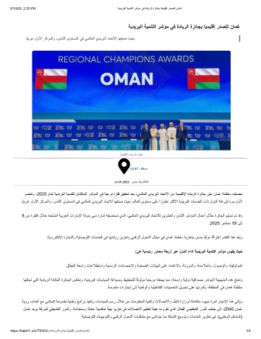 9/10/25, 2:36 PM ﺔﯾدﯾرﺑﻟا ﺔﯾﻣﻧﺗﻟا رﺷؤﻣ ﻲﻓ ةدﺎﯾرﻟا ةزﺋﺎﺟﺑ ﺎًﯾﻣﯾﻠﻗإ ردﺻﺗﺗ نﺎﻣُﻋ