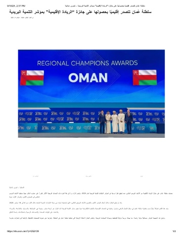 9/10/25, 2:37 PM ﺔﯾﻧﺎﻣﻋ نوؤﺷ – ﺔﯾدﯾرﺑﻟا ﺔﯾﻣﻧﺗﻟا رﺷؤﻣﺑ ”ﺔﯾﻣﯾﻠﻗﻹا ةدﺎﯾرﻟا“ ةزﺋﺎﺟ ﻰﻠﻋ ﺎﮭﻟوﺻﺣﺑ ﺎًﯾﻣﯾﻠﻗإ ردﺻﺗﺗ نﺎﻣُﻋ ﺔﻧطﻠﺳ