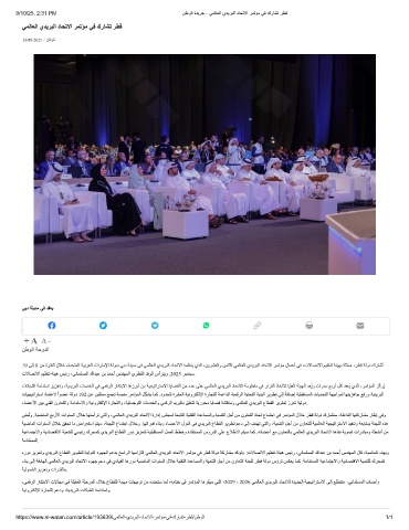 9/10/25, 2:31 PM نطوﻟا ةدﯾرﺟ - ﻲﻣﻟﺎﻌﻟا يدﯾرﺑﻟا دﺎﺣﺗﻻا رﻣﺗؤﻣ ﻲﻓ كرﺎﺷﺗ رطﻗ