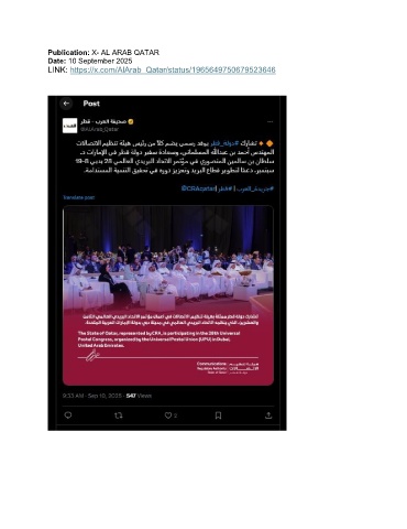 Publication: X- AL ARAB QATAR Date: 10 September 2025 LINK: https://x.com/AlArab_Qatar/status/1965649750679523646