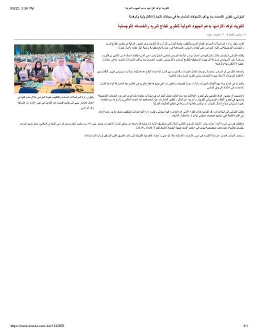 ﺔﯿﺘﺴﺟﻮﻠﻟا تﺎﻣﺪﺨﻟاو ﺪﯾﺮﺒﻟا عﺎﻄﻗ ﺮﯾﻮﻄﺘﻟ ﺔﯿﻟوﺪﻟا دﻮﮭﺠﻟا ﻢﻋﺪﺑ ﺎﮭﻣاﺰﺘﻟا ﺪﻛﺆﺗ ﺖﯾﻮﻜﻟا