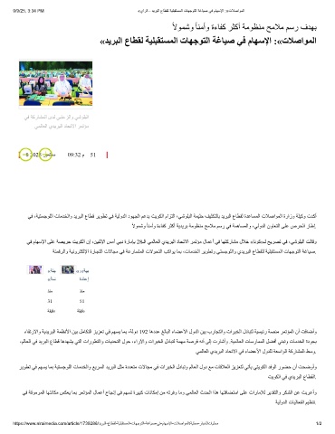 ﻲﻓ ،ﺔﯿﺘﺴﺟﻮﻠﻟا تﺎﻣﺪﺨﻟاو ﺪﯾﺮﺒﻟا عﺎﻄﻗ ﺮﯾﻮﻄﺗ ﻲﻓ ﺔﯿﻟوﺪﻟا دﻮﮭﺠﻟا ﻢﻋﺪﺑ ﺖﯾﻮﻜﻟا ماﺰﺘﻟا ،ﻲﺷﻮﻠﺒﻟا ﺔﻤﯿﻠﺣ ﻒﯿﻠﻜﺘﻟﺎﺑ ﺪﯾﺮﺒﻟا عﺎﻄﻘﻟ ةﺪﻋﺎﺴﻤﻟا تﻼﺻاﻮﻤﻟا ةرازو ﺔﻠﯿﻛو تﺪﻛأ